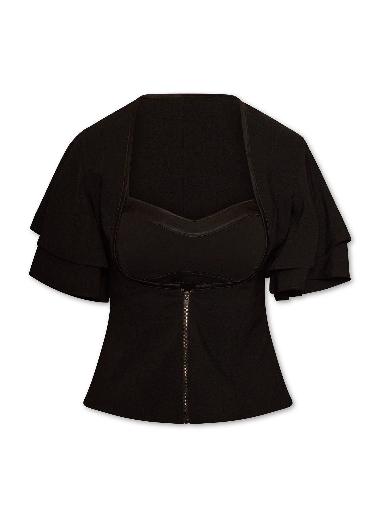 Designed to fit like a corset, the Ellie Zip-front hugs at the waist and leaves room for the bust. Giving an accentuated slim-waist-fit.