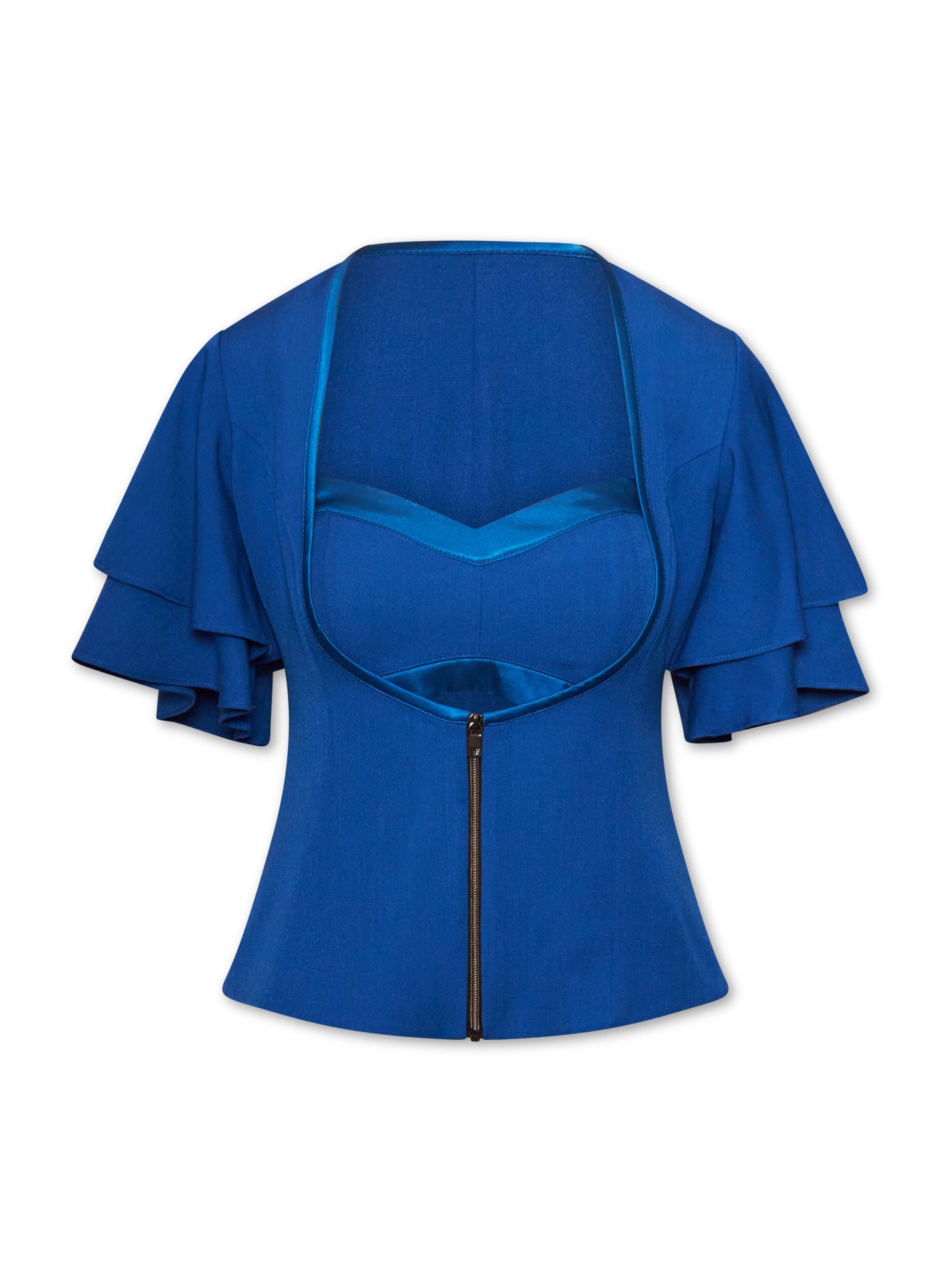 Designed to fit like a corset, the Ellie Zip-front hugs at the waist and leaves room for the bust. Giving an accentuated slim-waist-fit.