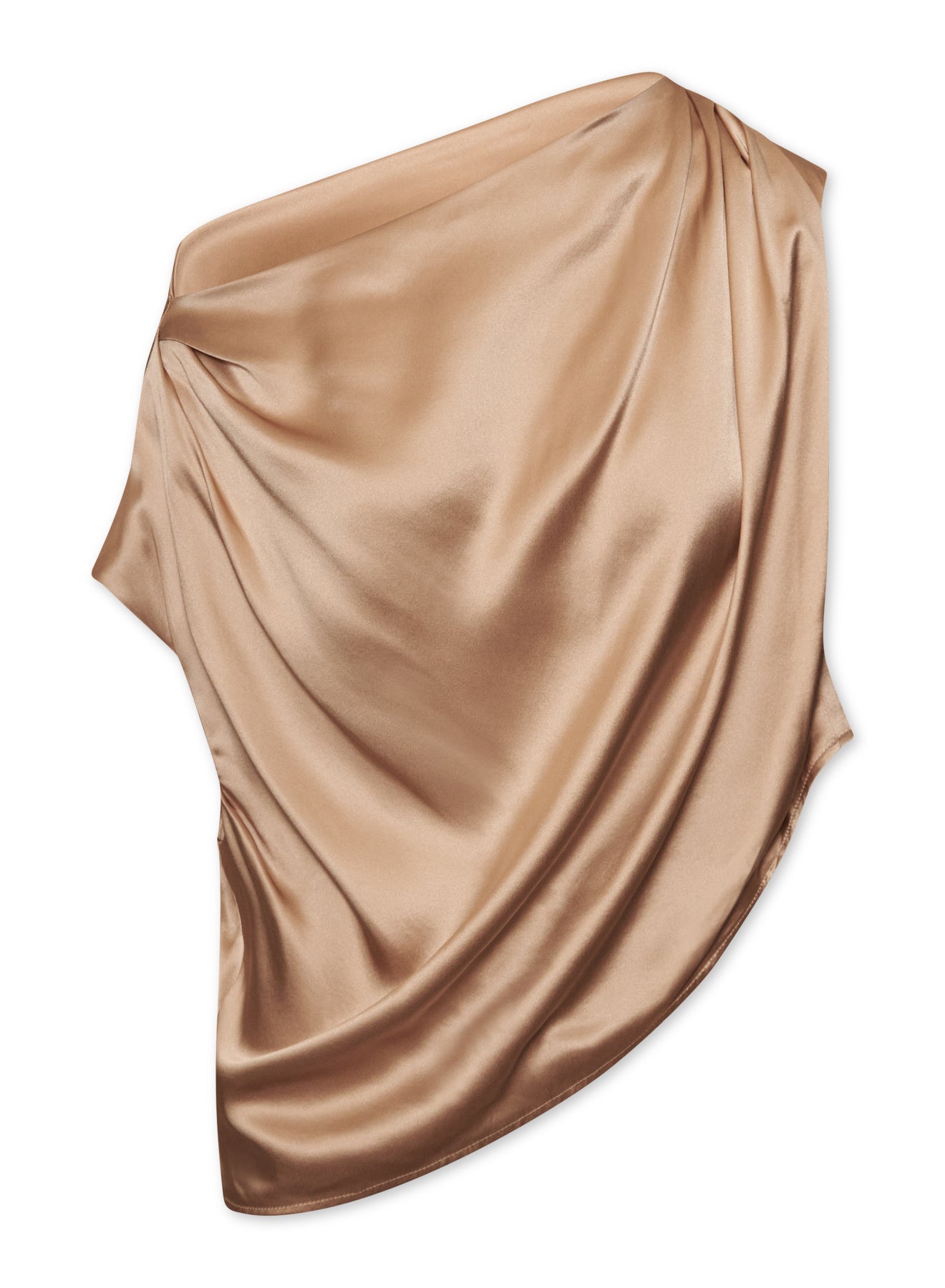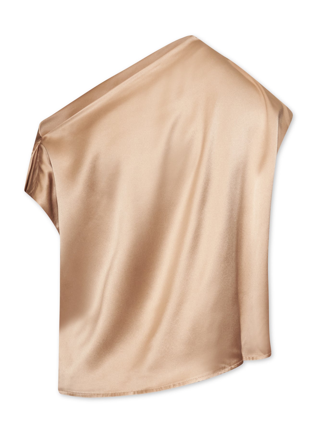 Worn in two different ways, the Princess Blouse drapes across the body bearing one shoulder or the collar bone as a boat-neck. Effortlessly perfect in satin.